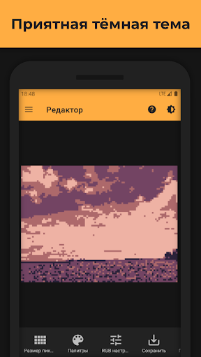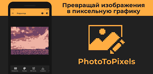 PhotoToPixels – это удобный инструмент для превращения ваших изображений в пиксельные картинки. Выбираете изображение со своего устройства, настраиваете размер блоков и цветовую палитру и жмёте кнопку "Сохранить" или "Поделиться".