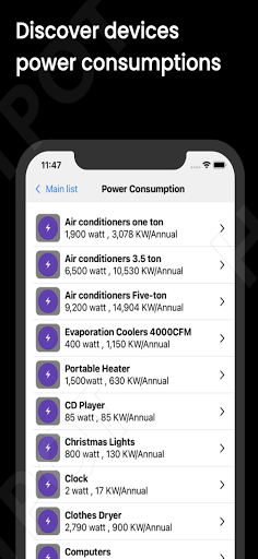 Особенности: - - средняя мощность спроса на здания. - энергопотребления - калькулятор мощности. - Watt-VA калькулятор. - кВт к калькулятуре AMP. - Типы электрической загрузки