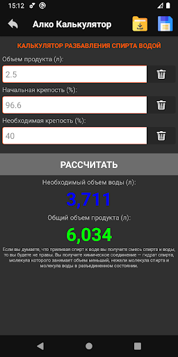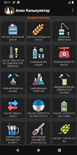 Калькулятор для винокуров, самогонщиков, пивоваров и всех кто занимается домашними напитками.