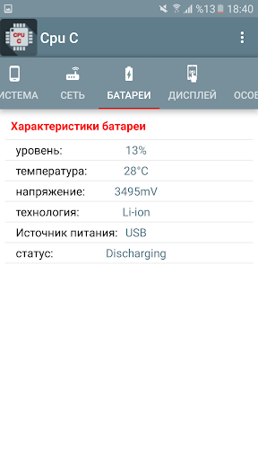 - Информация о батарее: уровень, состояние, температура, мощность;