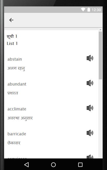 Learn English Vocabulary in a Step by Step manner using Nepali Language. Improve your English and gain confidence. This application contains audio to help you learn English in a systematic way. Listen and Learn important words using eight vocabulary lessons. It is known that improved vocabulary gives you the confidence to speak better English.