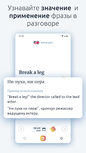 Каждый, кто изучает или уже знает английский язык, сталкивался с фразой, смысл которой невозможно было понять даже со словарем. Таким фразам и идиомам, как Break a leg («Ни пуха, ни пера") и It’s raining cats and dogs («льет как из ведра»), редко учат в школах и университетах. Они встречаются у носителей языка, в английских фильмах, сериалах и литературе. Бесплатное приложение «Английские фразы и идиомы с переводом каждый день» научит понимать и использовать на практике такие фразы и идиомы.