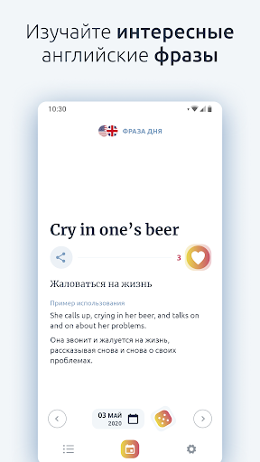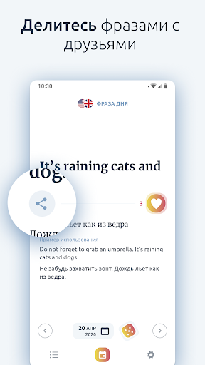 • Сохранять и делится понравившимися фразами и идиомами с друзьями