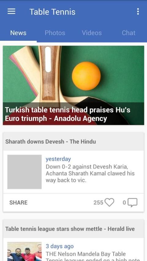 Кроме того, Настольный теннис новости подключить вас к миру, предоставляя доски обсуждений, которые вы можете обсудить и поделиться своим мнением с людьми, которые также озабоченность по поводу конкретной новости. Вы также можете поделиться новостями на Twitter или Facebook и других социальных сетей.