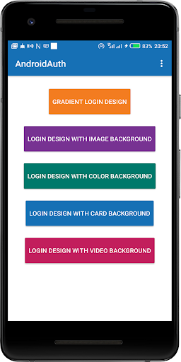 5 xml designs including Gradient design, Image background design, Color background design, Card background design and Video background design.