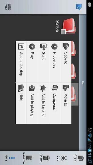 Файловый менеджер - Управление файлами, как вы делаете на вашем настольном компьютере или ноутбуке с помощью множественного выбора, Вырезать / Копировать / Вставить, перемещать, создавать, удалять, переименовывать, Поиск, Доля, Отправить, Скрыть, Создать ярлык, и закладки; операции могут быть выполнены на локальных файлов (на Android устройства) или дистанционно (на компьютере)