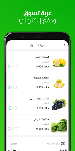 - Отслеживайте свой заказ с легкостью отправного подтверждения и даже момент доступа к приложению к вашему дому. - Получите эксклюзивные предложения при загрузке приложения, от всесторонней дисконтной купоны все списки приложений. - Все ваши овощи и фрукты доступны, нам будет спросить, где бы вы ни находились в штате Кувейт. - Интеллектуальный фильтр, чтобы найти весь ваш заказ.