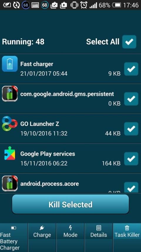 - Task Killer убивает задачи с одним нажатием кнопки