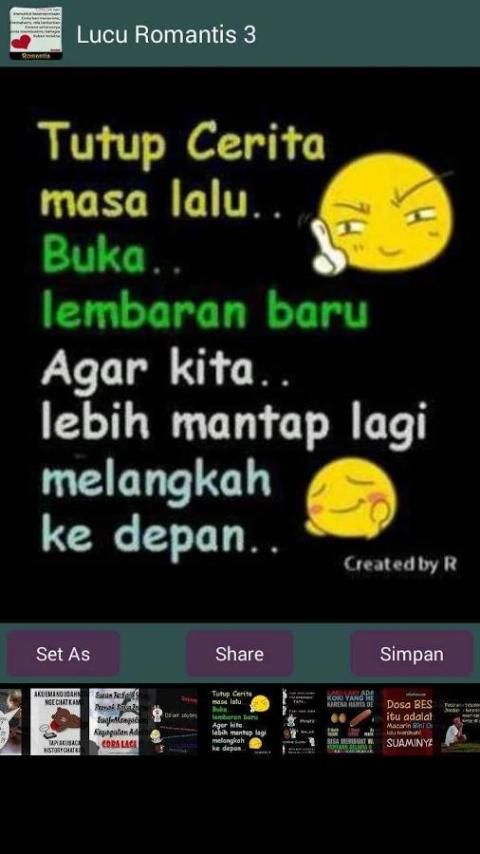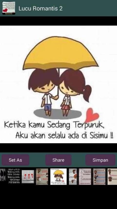 ДП Забавный Романтика это приложение, которое содержит слово gokil изображения, прохладный, новейший. Для вас, кто хочет романтический с парнем, пытался выразить себя через Эр BBM или обновление статуса FB. С помощью фотографий на тему романтично и смешно, вы можете высказать свои внутренние чувства через это приложение. Установив этот дп, вы будете чувствовать себя более комфортно в общении с любовником. Также выразить свои чувства к человеку вы хотите, чтобы побаловать себя с последними романтических слов.