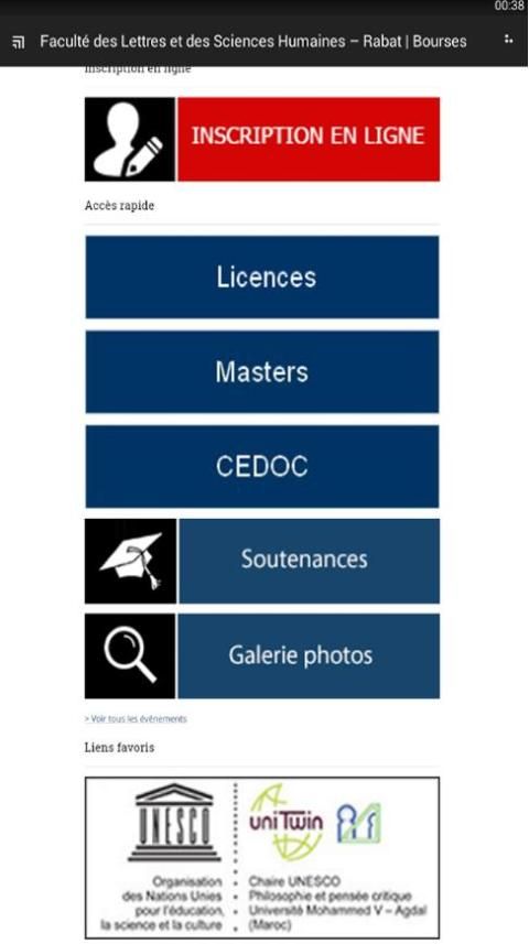 Конкретное применение студентов факультета искусств и гуманитарных наук в Рабате, приложение позволяет записывать в университете или перерегистрации.