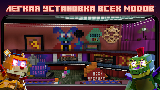 - Играйте в одиночку или в режиме pvp и делитесь с друзьями своими любимыми модами фнаф для майнкрафта;