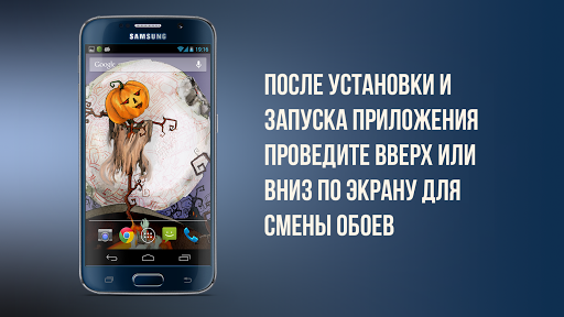 Это Хэллоуин! Приложение с уникальным набором обоев в HD качестве на тему Хэллоуина с эффектом "Bloodlust". Оно позволяет менять обои, просто проводя пальцем вверх или вниз по экрану вашего устройства. В настройках вы можете настроить чувствительность перехода или же включить таймер смены обоев. Поддержка устройств с Android 2.3 и выше. Программа проста в использовании и не замедляет работу устройства.