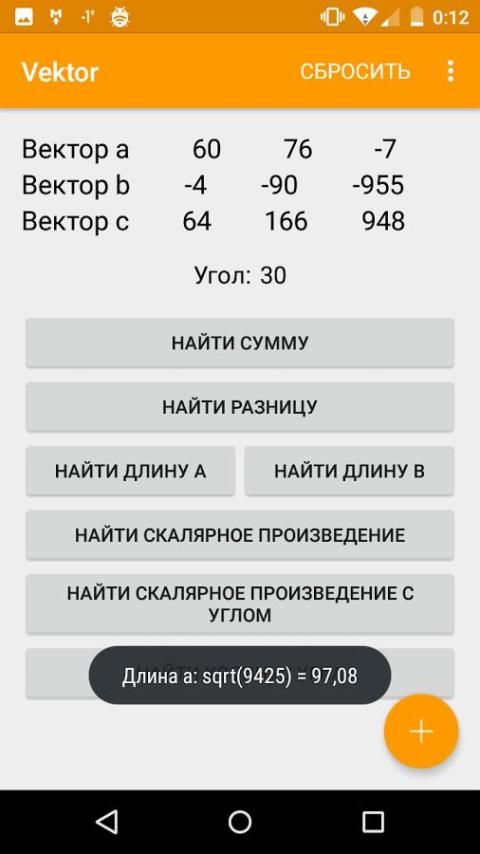 Vektor - это простой векторный калькулятор, который имеет такие возможности: