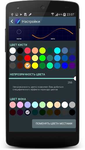 - Теперь можно редактировать палитру кисти и фона