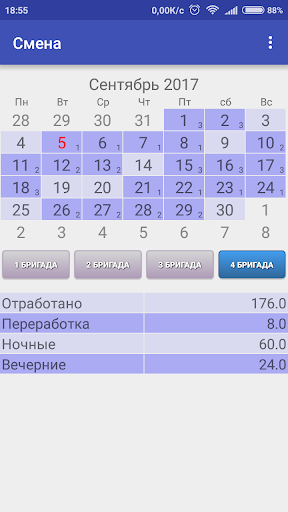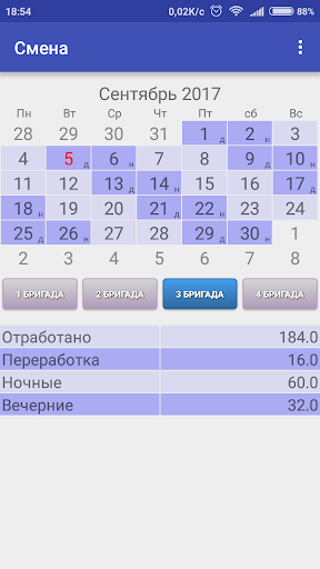 2. Узнать какая бригада будет работать в выбранный день просто нажав на нем в календаре