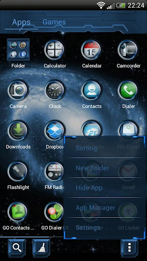 1) в Go Launcher EX нажмите кнопку меню телефона; 2