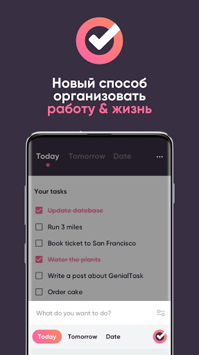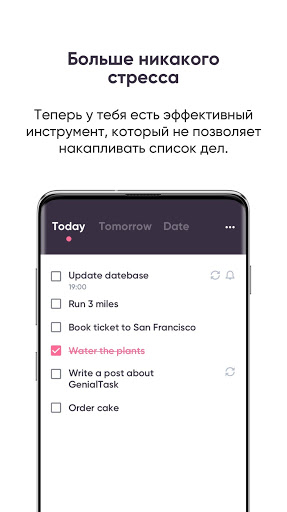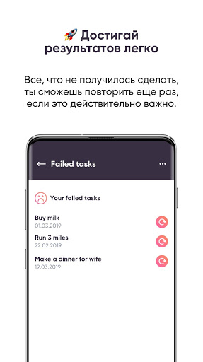 Все что вы планируете сделать завтра, вы вносите во вкладку "завтра". Все, что вы должны сделать сегодня, вы делаете в течение дня. Так получается список дел, который постоянно двигается с сегодня на завтра. После того, как день закончится, все задачи которые вы должны были сделать сегодня исчезают. Далее они попадают в статистику завершенных и незавершенных дел. Незавершенные задачи можно будет повторить либо просто удалить.