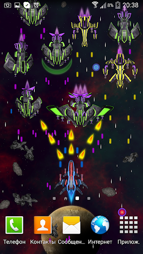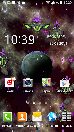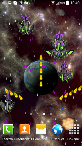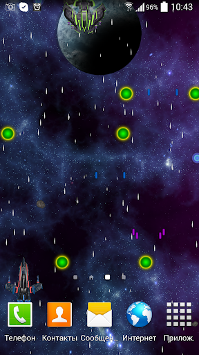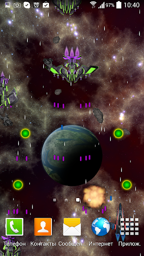 Представляем Вашему вниманию новые живые обои в HD качестве! Вы - свидетель легендарной битвы в глубинах Вселенной. Вы - невидимый помощник одинокого космического корабля, бороздящего просторы вселенной. Вам постоянно встречаются враждебно настроенные представители других рас, которые атакуют Вас. Только Вы можете повлиять на исход наблюдаемой битвы. Собирайте бонусы, используете оружие и щиты или же просто наслаждайтесь развернувшимся действием.