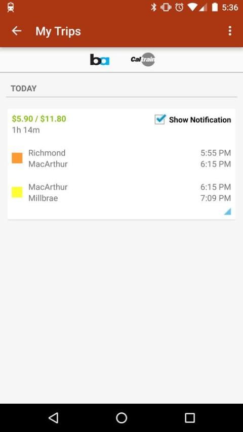✓ Интеллектуальный BART <> Обнаружение Caltrain передачи, нажмите Caltrain получить график нужное время
