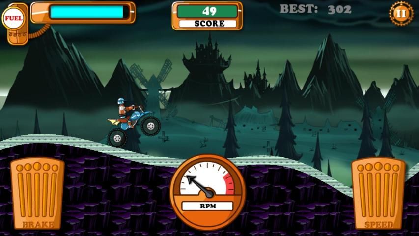 Travel the maximum distance and use your scores to unlock new bikes and levels.