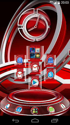 RedLi 3D - эта тема создана в красных тонах и полностью изменяет дизайн лаунчера и включает в себя: 6 тематических HD обоев и виджет часов.