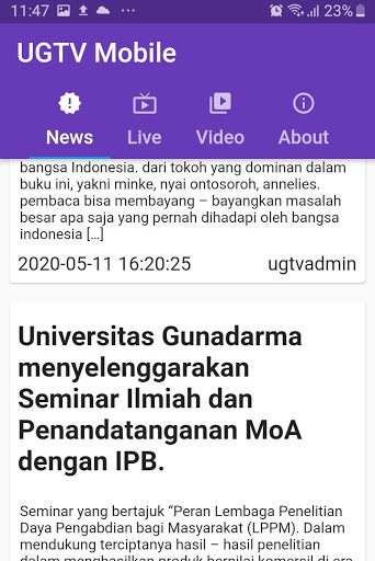 UGTV, проведенный пробные вещания в мае 2020 мая, также оснащенной мобильной UGTV, который можно получить доступ от Gawai. Полнота технологии предназначена, чтобы содержание УГТВ можно было широко пользоваться как академическими, так и сообществами.