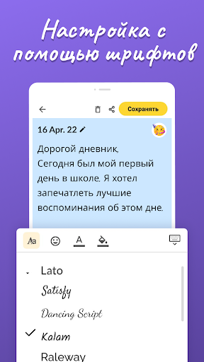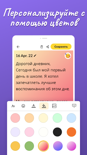 Стилизация и персонализация. С помощью этого приложения для дневника вы можете настроить каждую заметку, которую вы пишете. Вы можете выбрать собственный шрифт, которым хотите писать каждый день. Вы даже можете выбрать другой цвет для каждой заметки, чтобы соответствовать вашему настроению.