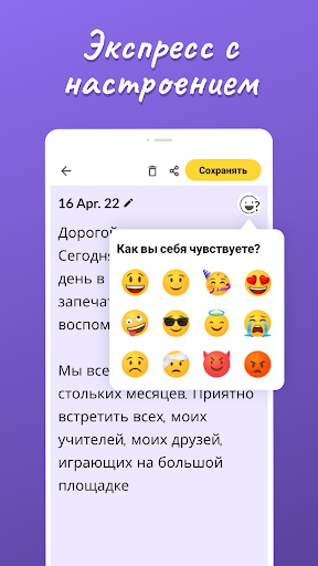 Выразите себя с помощью смайликов: приложение «Мой личный дневник» предлагает вам большую базу данных красивых значков для ваших персонализированных действий. Выбирайте эмодзи, чтобы свободно выражать себя и отражать свое настроение.