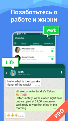 · Используя функцию клонирования приложений 2Space Pro, вы можете клонировать второй WhatsApp, предназначенный для входа в вашу рабочую учетную запись WhatsApp, во втором пространстве для общения с коллегами.