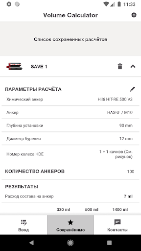 Hilti Volume Calculators позволяет быстро и легко определить требуемое количество капсул с химическими анкерами под конкретную задачу. Определив несколько параметров(базовый материал, тип химического анкера Hilti, диаметр шпильки, диаметр отверстия) приложение выдает результат учитывая опыт установщика.