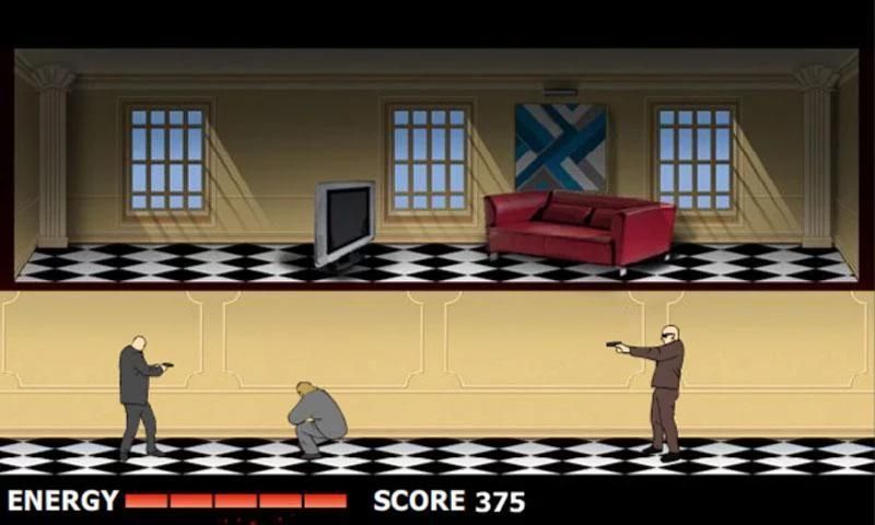 You are playing a smartly dressed hitman. You are to infiltrate the bad guys building. You have a pistol and have to very quietly explore every level and room in their building. Look out for enemy units, you must shoot them on the spot or else they might shoot you. Also don't forget to keep an eye on the energy status. Good Luck...