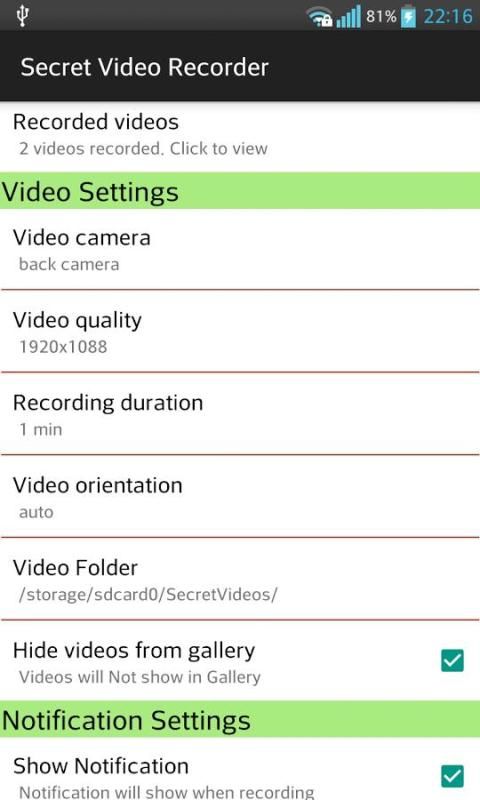 Секрет видеорегистратор делает фоновую запись, так что вы можете использовать свой телефон в качестве нормального и никто не может сказать, вы записываете видео.