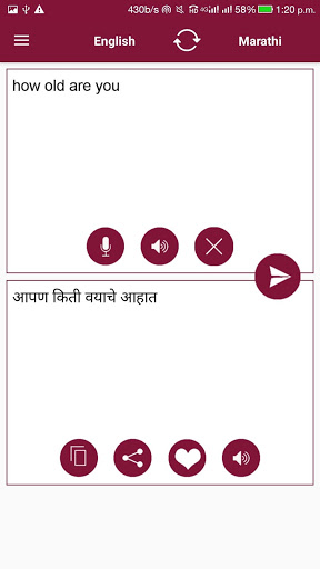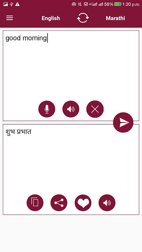 * В обоих режимах Marathi To English Translator или Anglish - Marathi Translator.