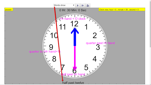 The hints 'words show' is also designed to help children realized the logic of the English language such as 'half past hour'.