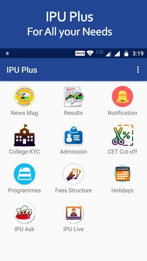 IPU Plus предлагает последние новости и обновление от IPU News Mag и имеет широкий спектр услуг, такие как онлайн проверить IPU результатов, прием результатов обновления, мгновенное уведомление, Знайте свой колледж (ЗСК), связанные с допуском информации, как Admission Updates, Admission консультирование (онлайн и оффлайн ), прием брошюра, колледжи и курсы и отрезные, поступающие Результаты, плата Структура, Курсы и программа деталь, событие и праздники, IPU спросить - форум, чтобы задать вопросы и IPU Plus.