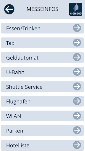 Новое приложение предоставляет вам ценную информацию для следующей ярмарки High End®. Вот обзор информации: