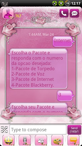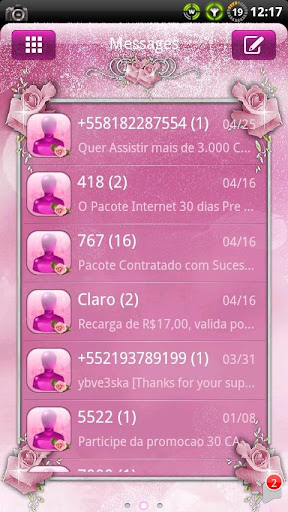 Сделайте свой GO SMS PRO Total Pink с розами, оформленные в рамке.