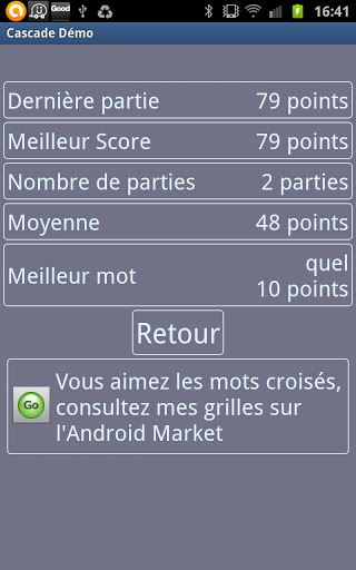 Vous voulez conserver un esprit vif, une bonne mmoire.Vous aimez jouer au Scrabble, aux mots croiss flchs, au mot le plus long, et autres jeux de lettres. L39;orthographe, le vocabulaire, ll langue franaise vous sont importants...Cascade est fait pour vous.Bas sur le dictionnaire de l39;Acadmie Franaise ce jeu vous entraine pour le Scrabble, les mots croiss...Confrontezvous la langue franaise, obstinezvous, battez vos records, amloirez vos statistiques.Vous apprciez Cascade, encouragez nous, pensez laisser une note et un commentaire sympathique...Une remarque, une amlioration contacteznous quot; les.croises.android@free.fr quot;Retrouvez nos autres publications sur le market avec ces mots cl : lettre, mot, scrabble, verbe, conjuguer, grille, facile, crois, croise