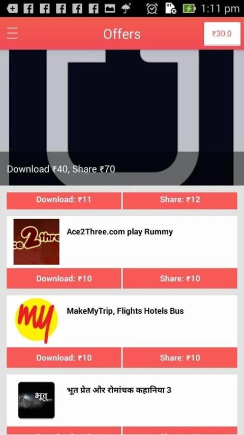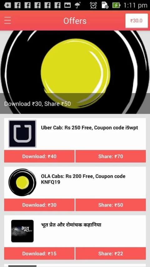 • На предложение вашей стене, откройте для себя бесплатные предложения от топ-приложений, как Amazon, Flipkart, OLX, Snapdeal, Shopclues, Ola, большая корзина, Groffers, Myntra и многое другое, чтобы заработать бесплатный 200 подпитку