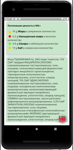 Сканирование продукта - очень простое в использовании приложение для получения информации о пищевой ценности пищевых продуктов.
