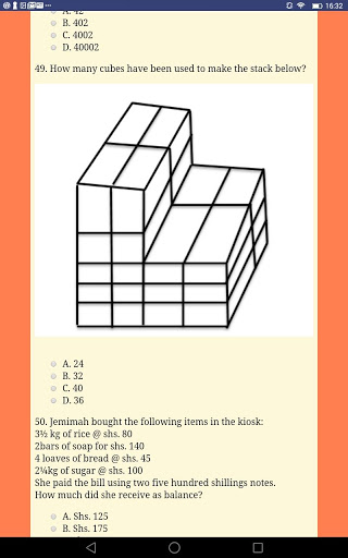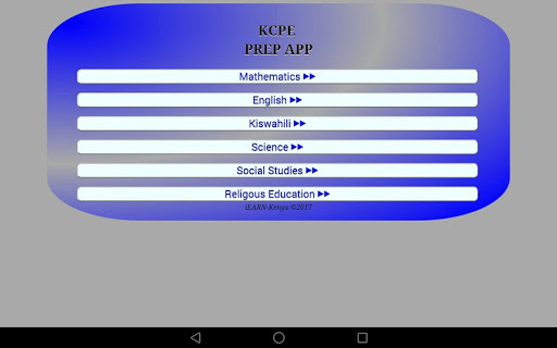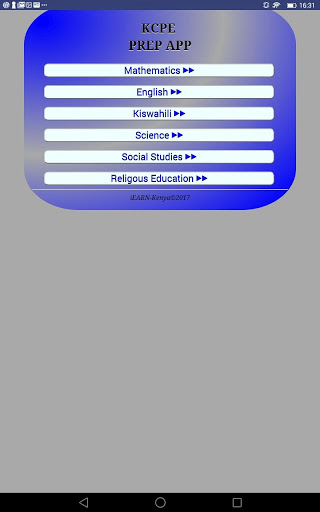 Multi-choice Questions and answers specially designed and packaged to reflect the true KCPE exams in the Kenyan Education system.The main subjects are English, Mathematics, English, Kiswahili, Science, Social Studies and Religious Education .