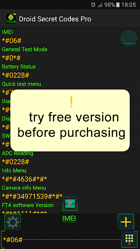 NB: Некоторые секретные коды не работают в некоторых устройствахПопробуйте бесплатное приложение перед покупкой.