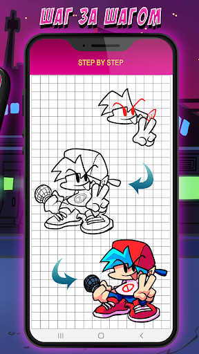 Как нарисовать Фрайдей Найт Фанкин моды (FNF) персонажей аниме шаг за шагом приложение, которое научит вас рисовать персонажей на листке бумаги. Все уроки выполнены на листке в клетку, чтобы вы смогли нарисовать Фрайдей Найт Фанкин моды комфортно. Ведь у нас есть, что порисовать! Более 35 уроков как нарисовать FNF из аниме Friday Night Funkin, таких как Девушка, Парень, Танкмен, Пико и др. Так чего же вы ждете? Скорее устанавливайте и у вас не возникнет вопросов, Как нарисовать Фрайдей Найт Фанкин моды.