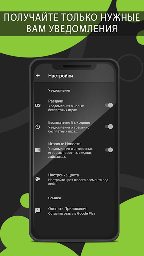 - Настраиваемые уведомления, благодаря которым вы не пропустите ни одной бесплатной игры;