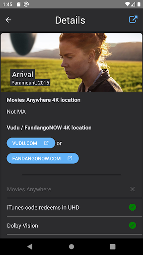 tells you where to redeem your digital code to get a 4K copy, what titles are on Movies Anywhere and which ones stream in HDR with Dolby Vision. No more trying to guess whether to redeem your 4K digital code on Vudu or iTunes!