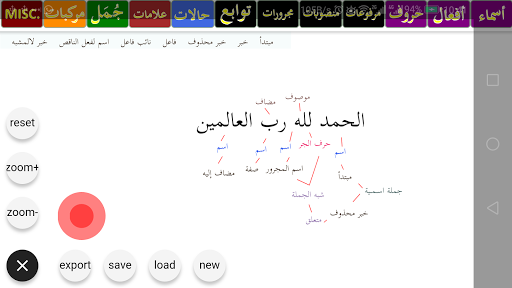 Наше приложение I'raB позволяет пользователю вручную анализировать арабские тексты быстрее, Neater и более простым способом, просто перетаскивая и падая компоненты грамматики на холст.Это приложение идеально подходит для студентов и преподавателей арабского и NAHW и SARF, изучая Iraab / Tarkeeb.