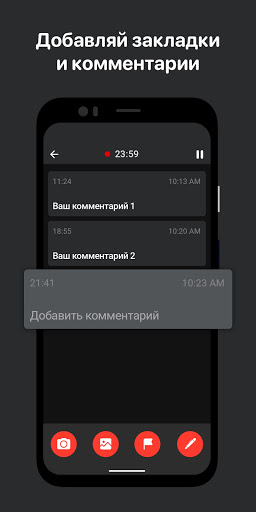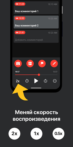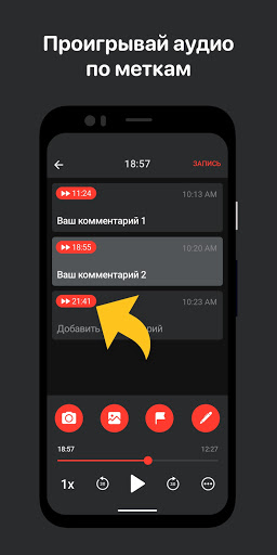 Результат – наглядная стенограмма аудиозаписи, состоящая из закладок, фотографий и комментариев, привязанных ко времени их добавления. Это позволяет быстро ориентироваться и прослушивать самые важные моменты.
