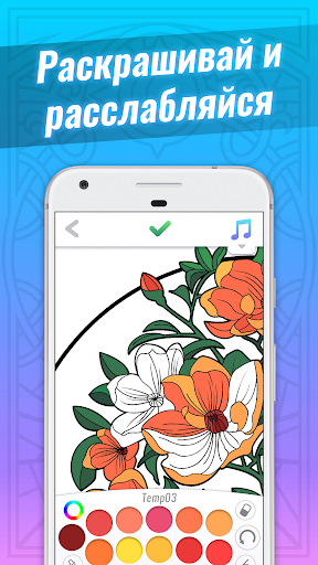 Устройся поудобнее, отвлекись от всех проблем и насладись раскрашиванием уникальных изображений и успокаивающей музыкой.