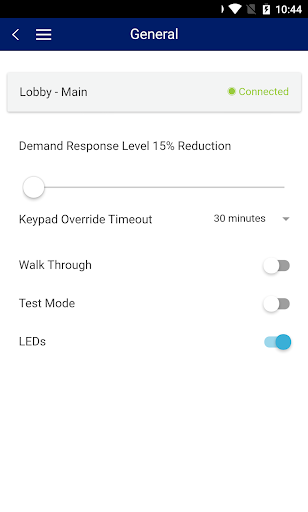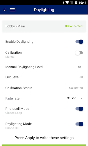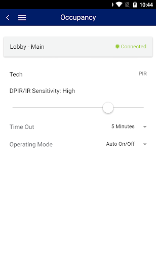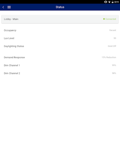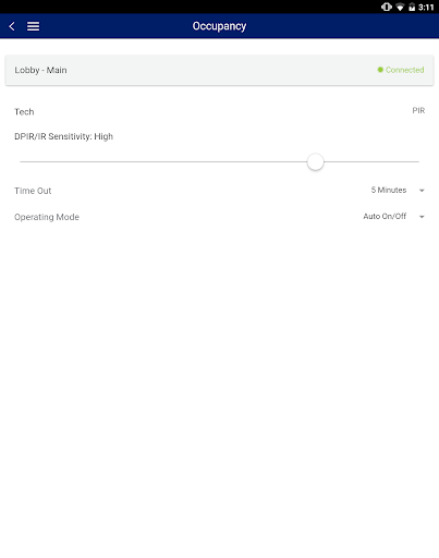 Configure daylight harvesting levels, occupant sensor range and sensitivity, vacancy timeouts, partial on/off levels, and demand response action all with your Bluetooth mobile device.