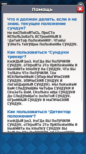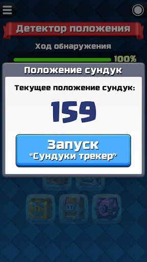 Перед тем как начать работу с “Сундуки трекер для Clash Royale”, вы должны знать текущее положение сундуки. Это нормально, если вы не уверены в этом. Вы можете использовать “Детектор положения” чтобы выяснить положение сундуки.